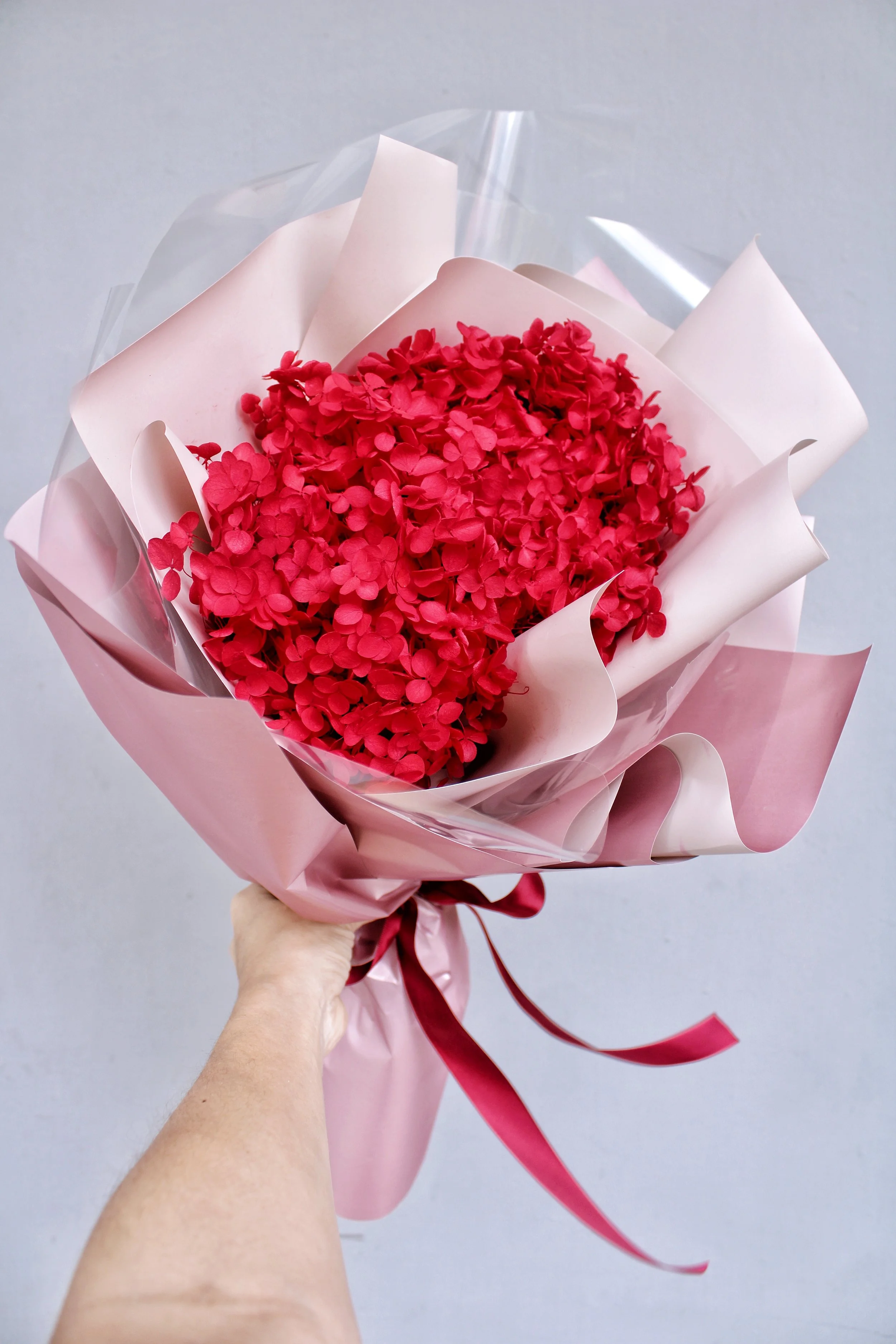 A preserved bouquet of Cotton, Dusty lilac-ky pinky roses and all things rustic. Perfect for all occasions.